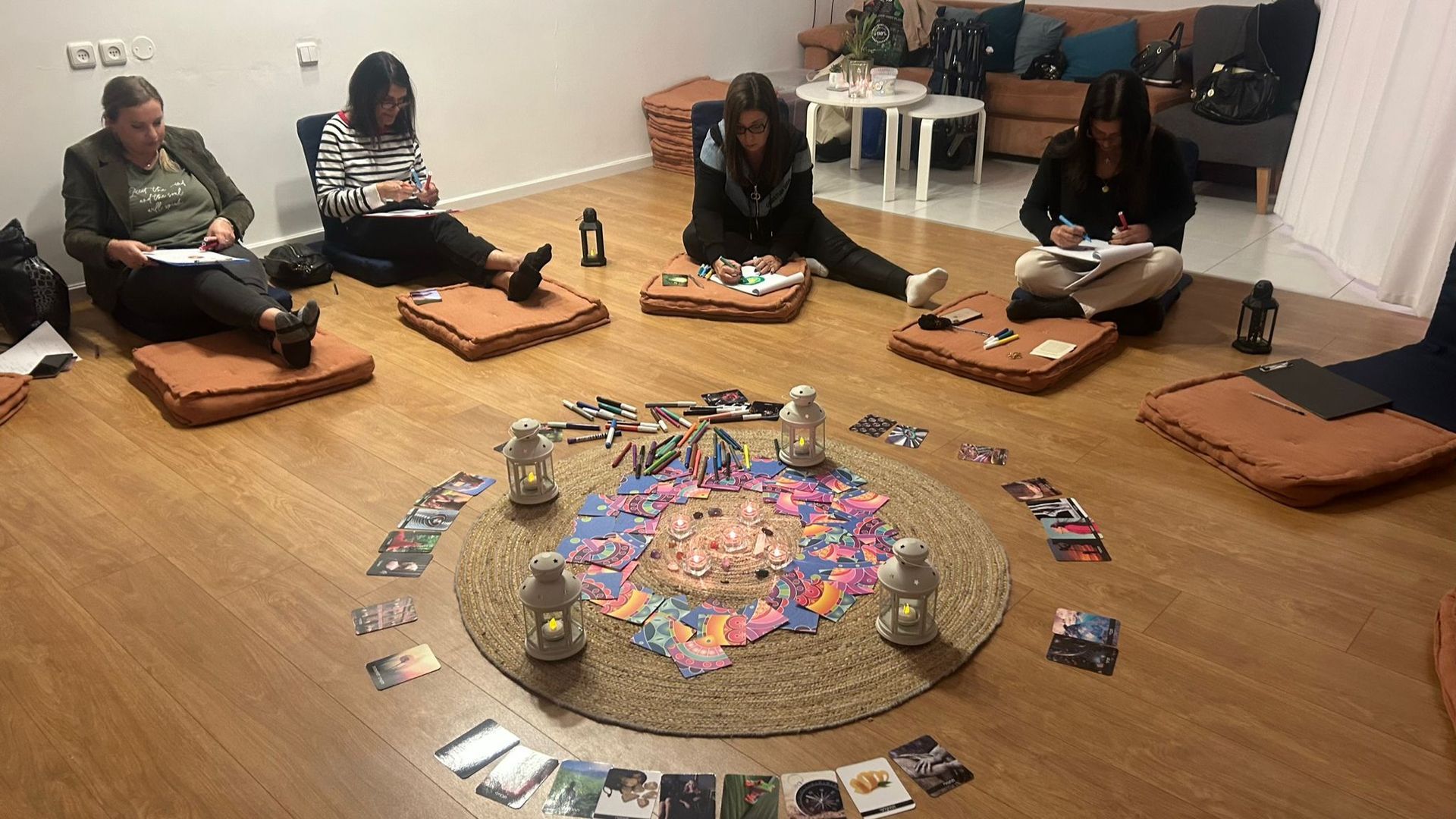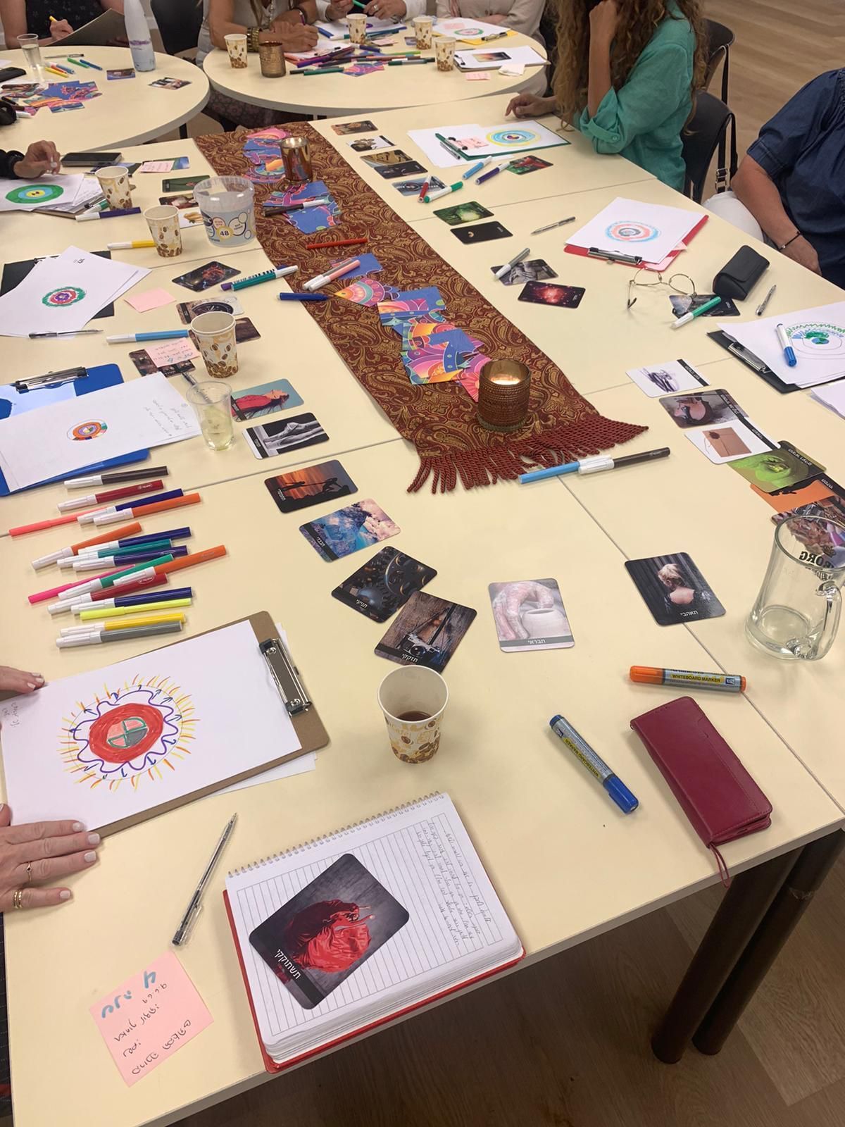 המפגש משלב קלפי התבוננות וקלפי מנדלה שמעבירים מסר אישי.